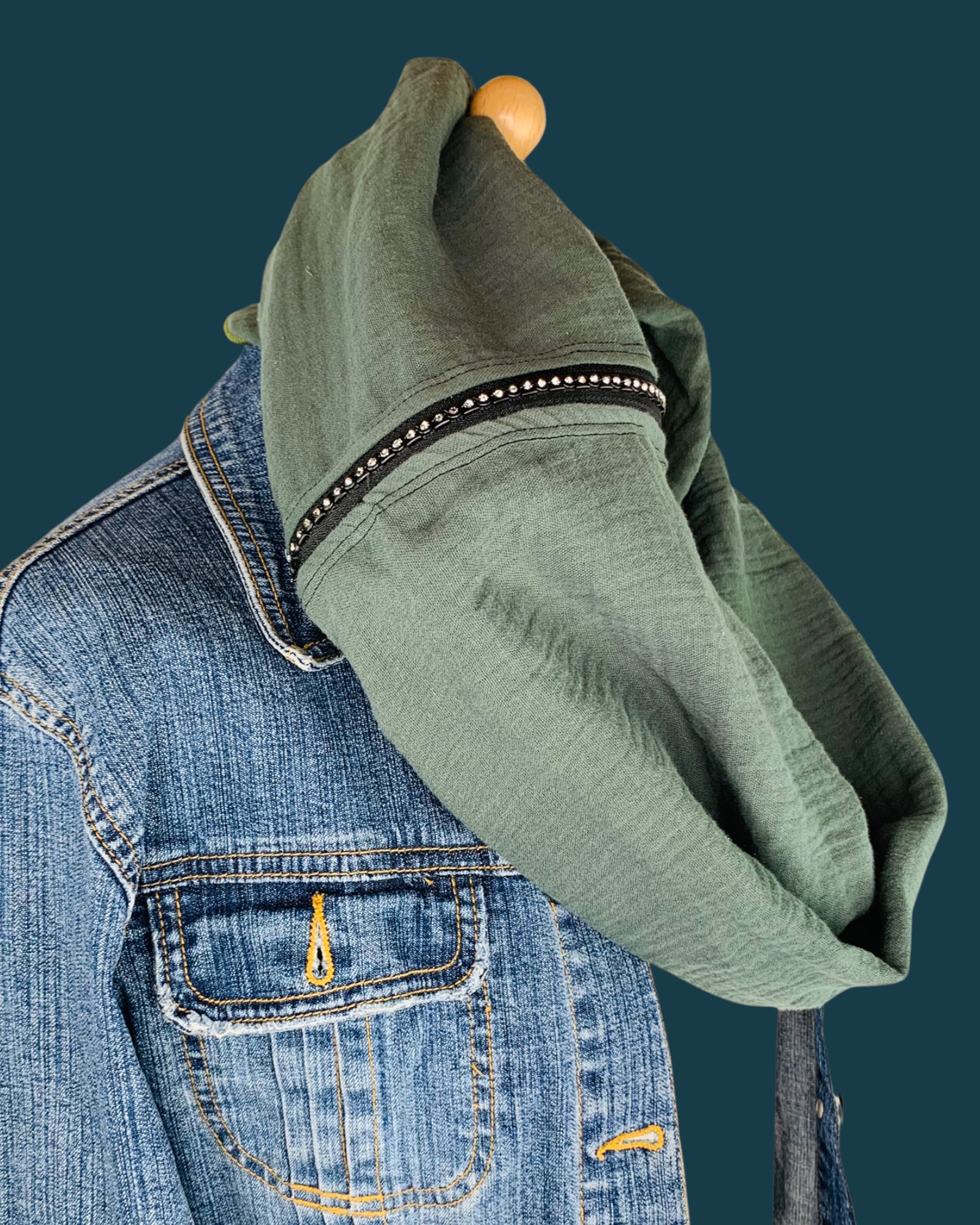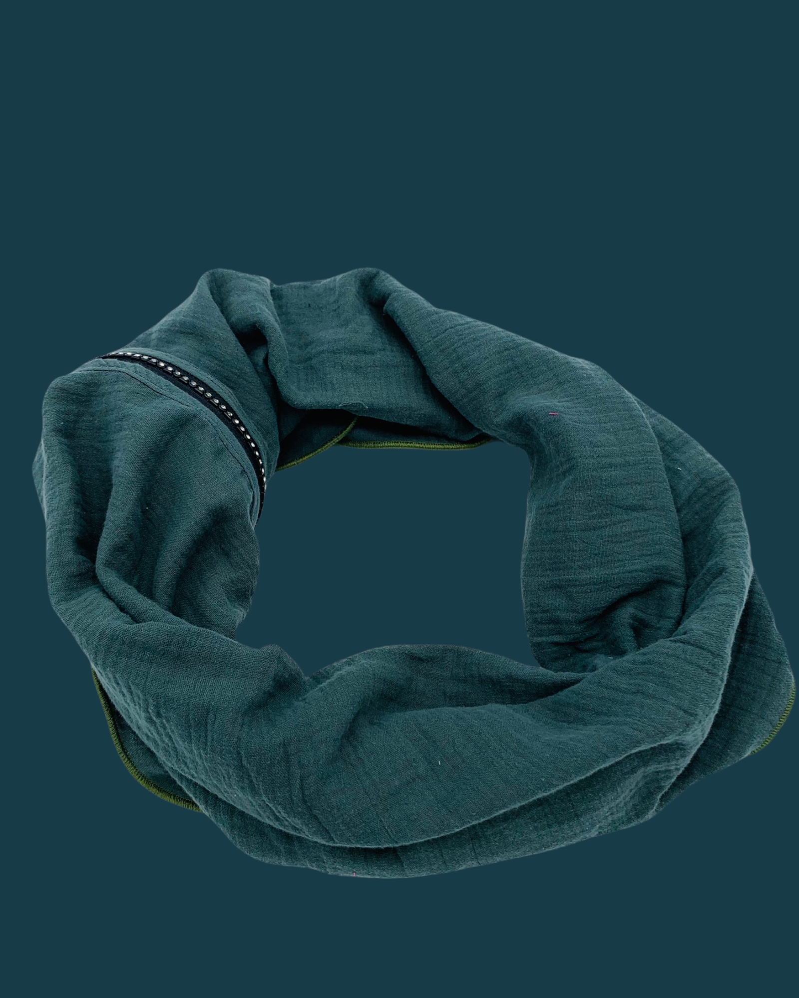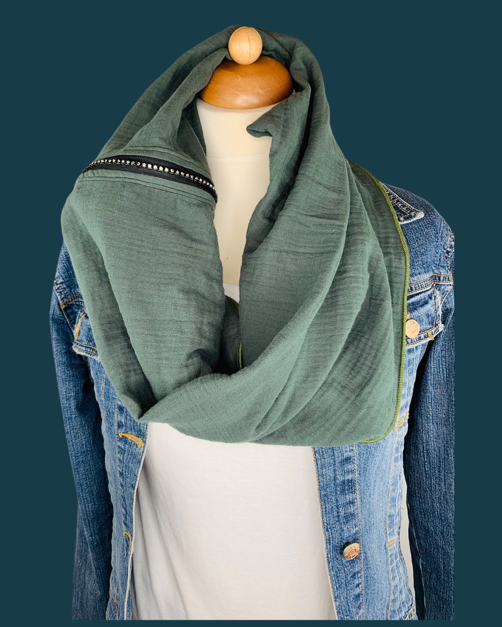 Mit dem Reißverschluss kann dieser Schal ebenso offen (wie ein klassischer Schal) getragen werden.