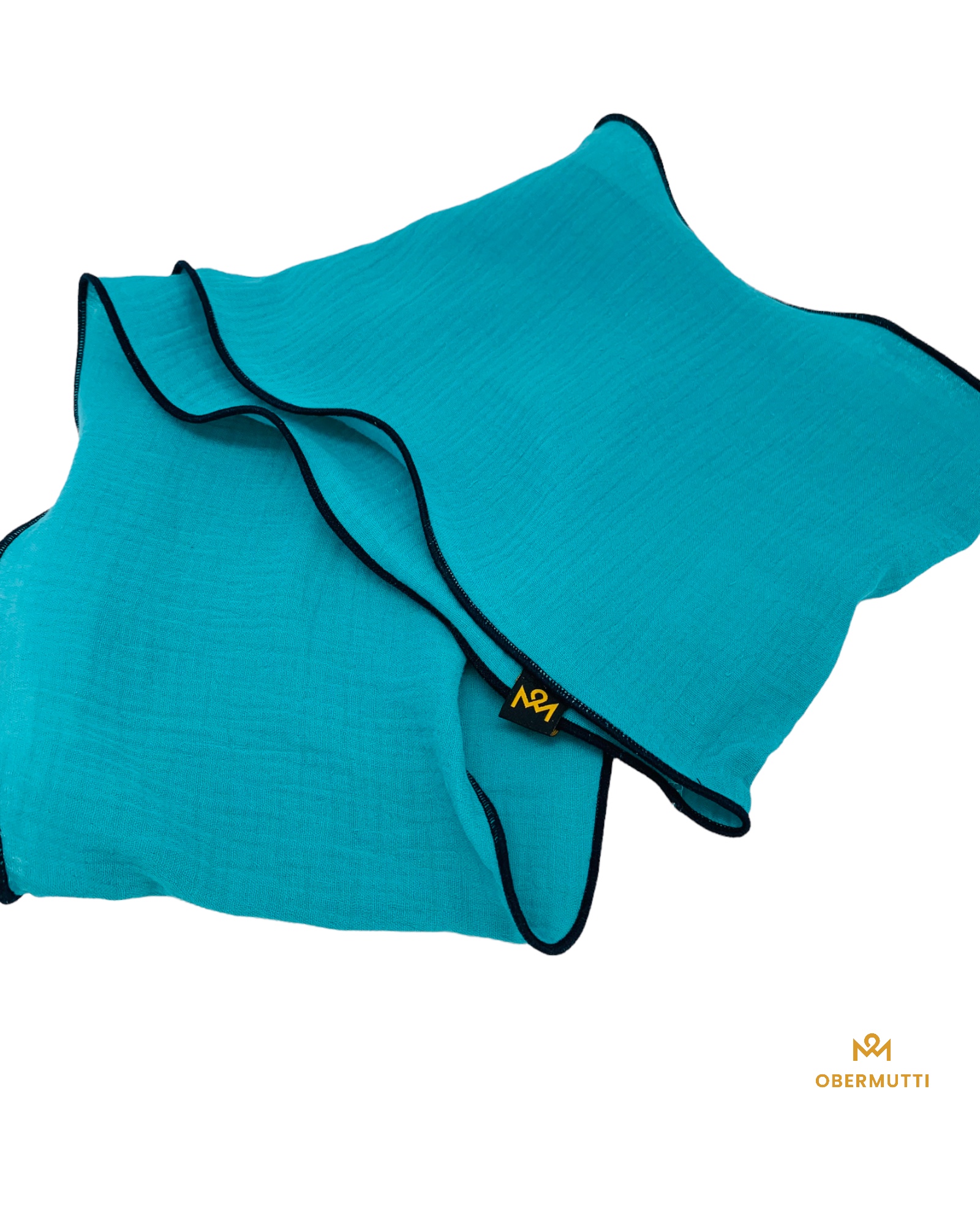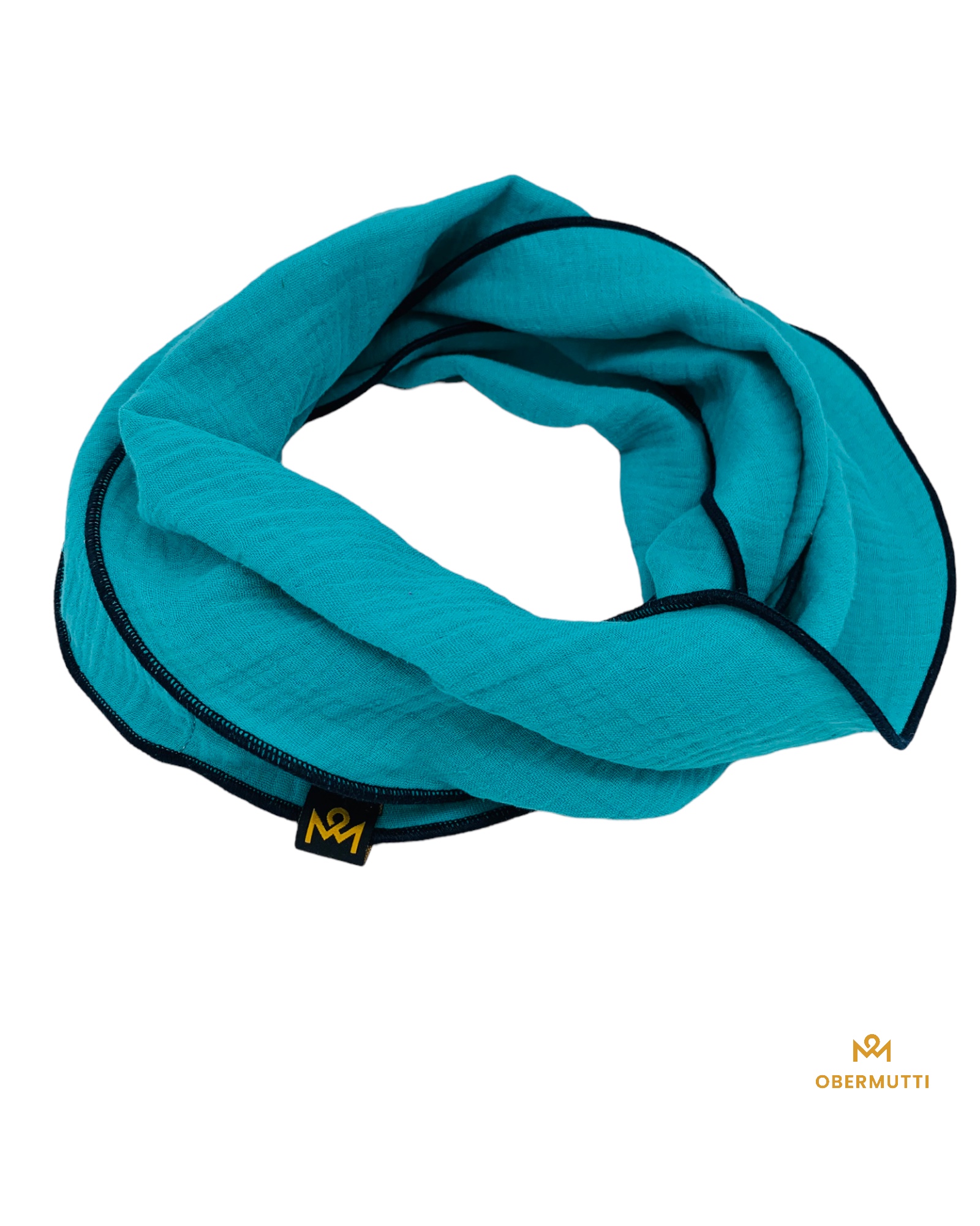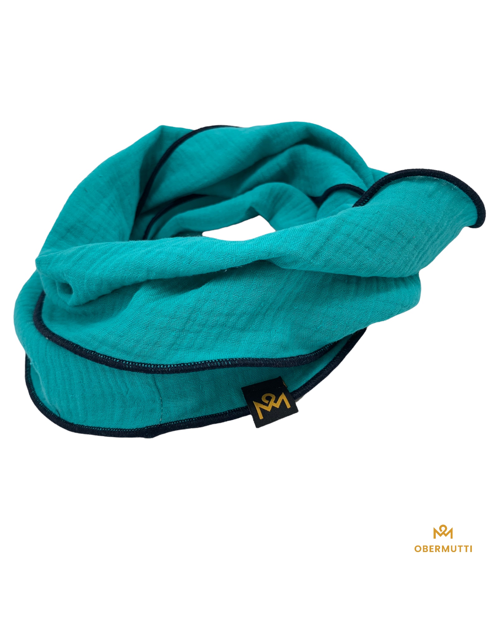 Dieser hochwertige, doppelt gewebte Schlauchschal aus 100% Baumwollmusselin wurde in der Farbe "Türkis" gefertigt.