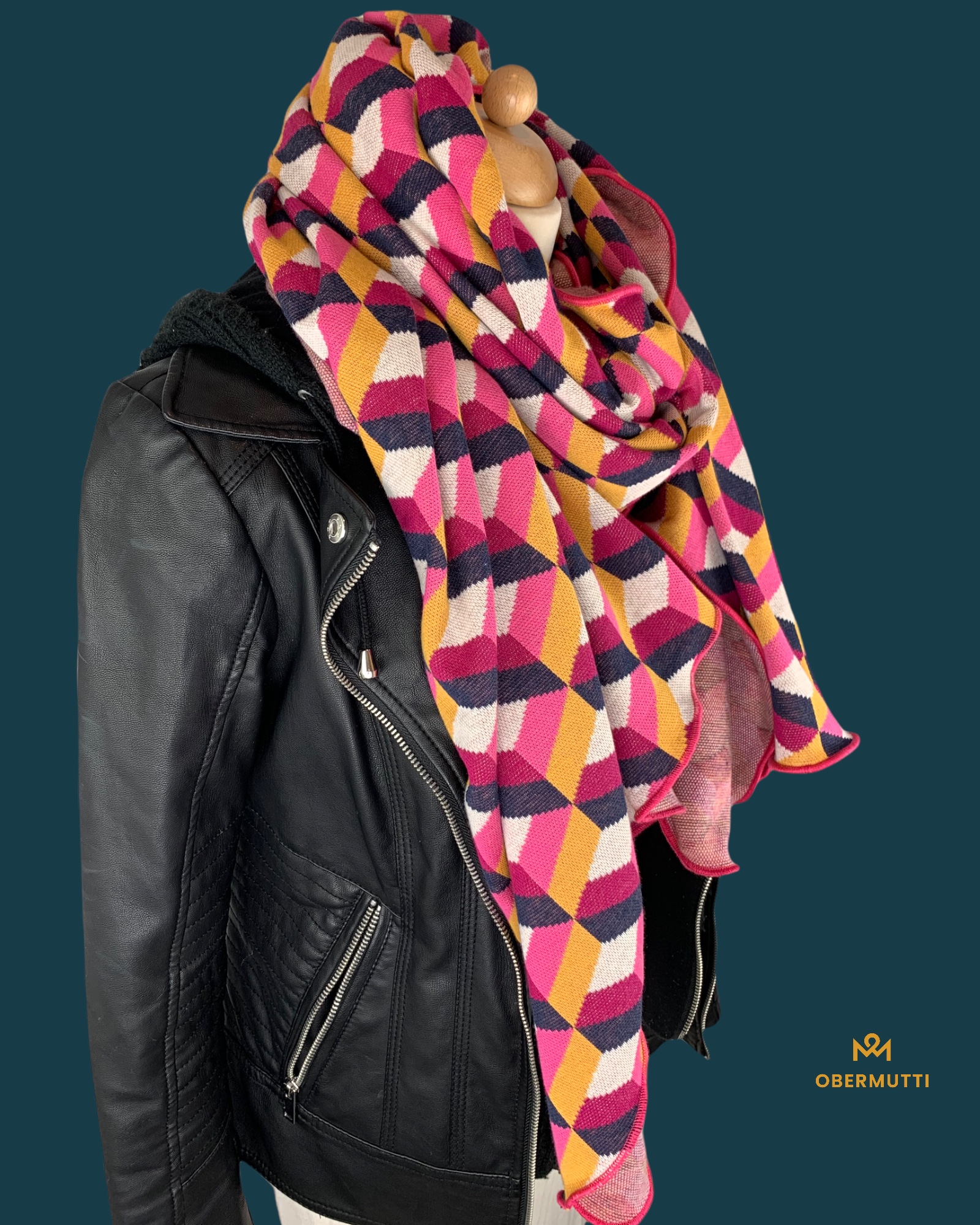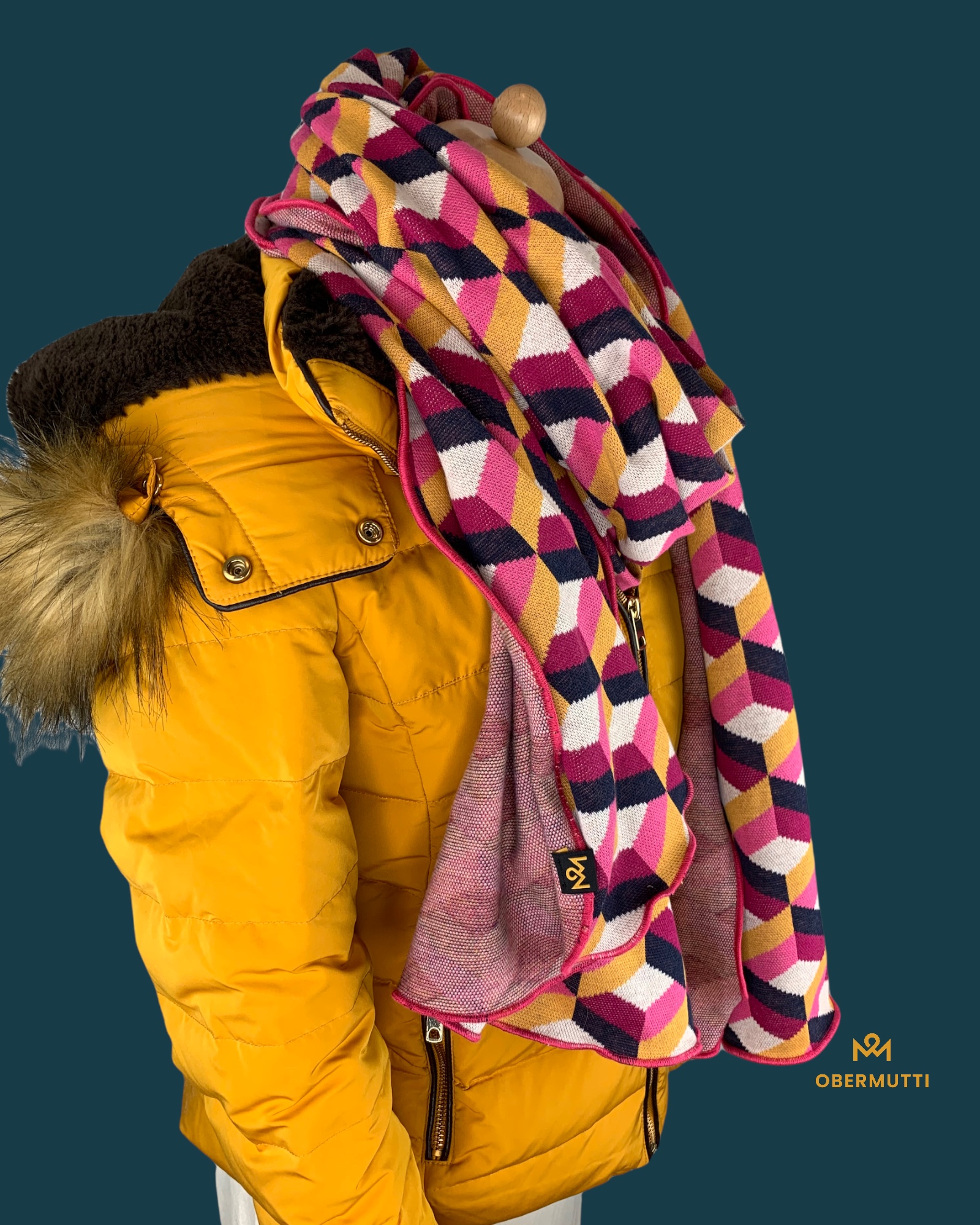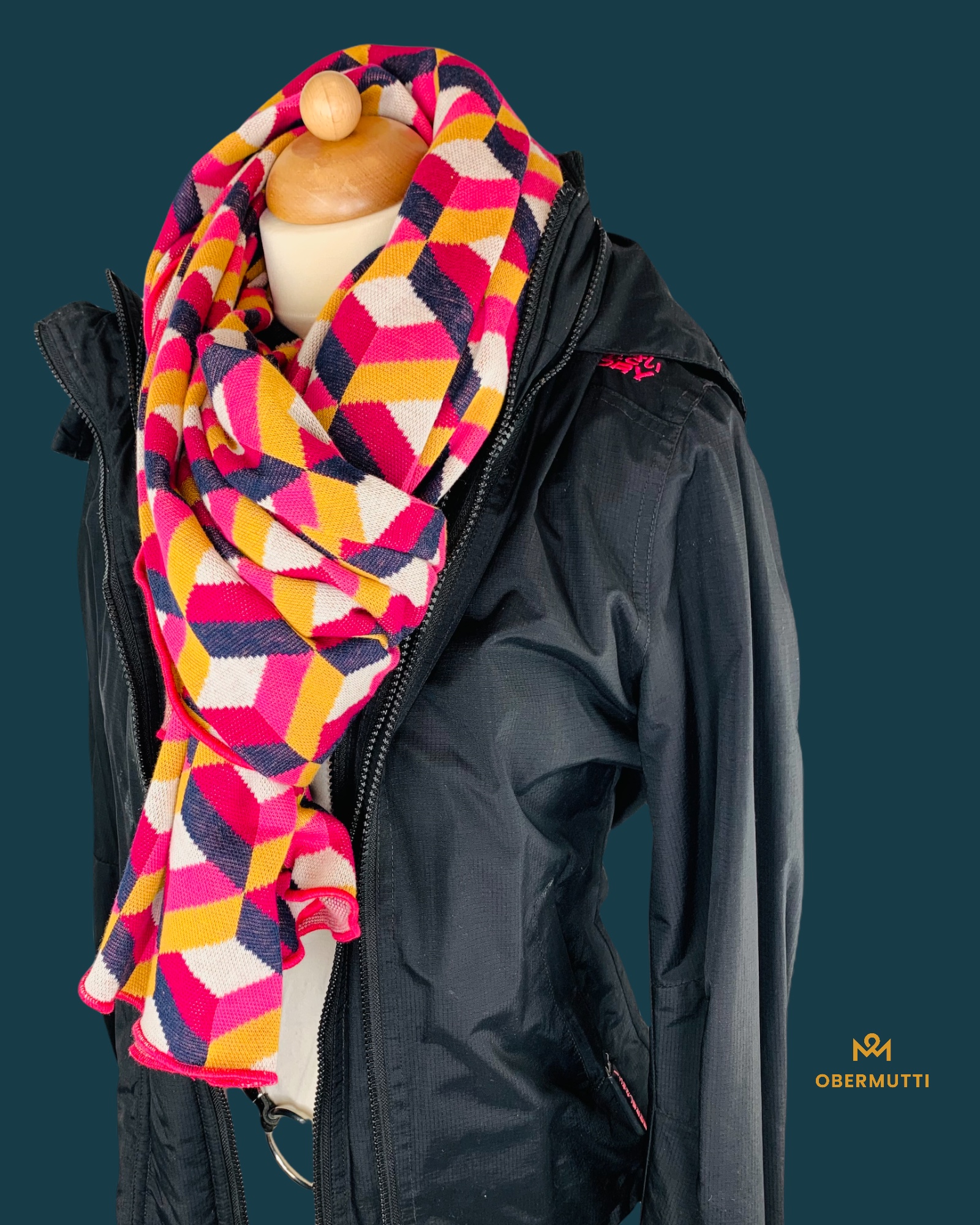 Das Logo OBERMUTTI besteht aus 50% Polyester und 50% recyceltem Polyester.