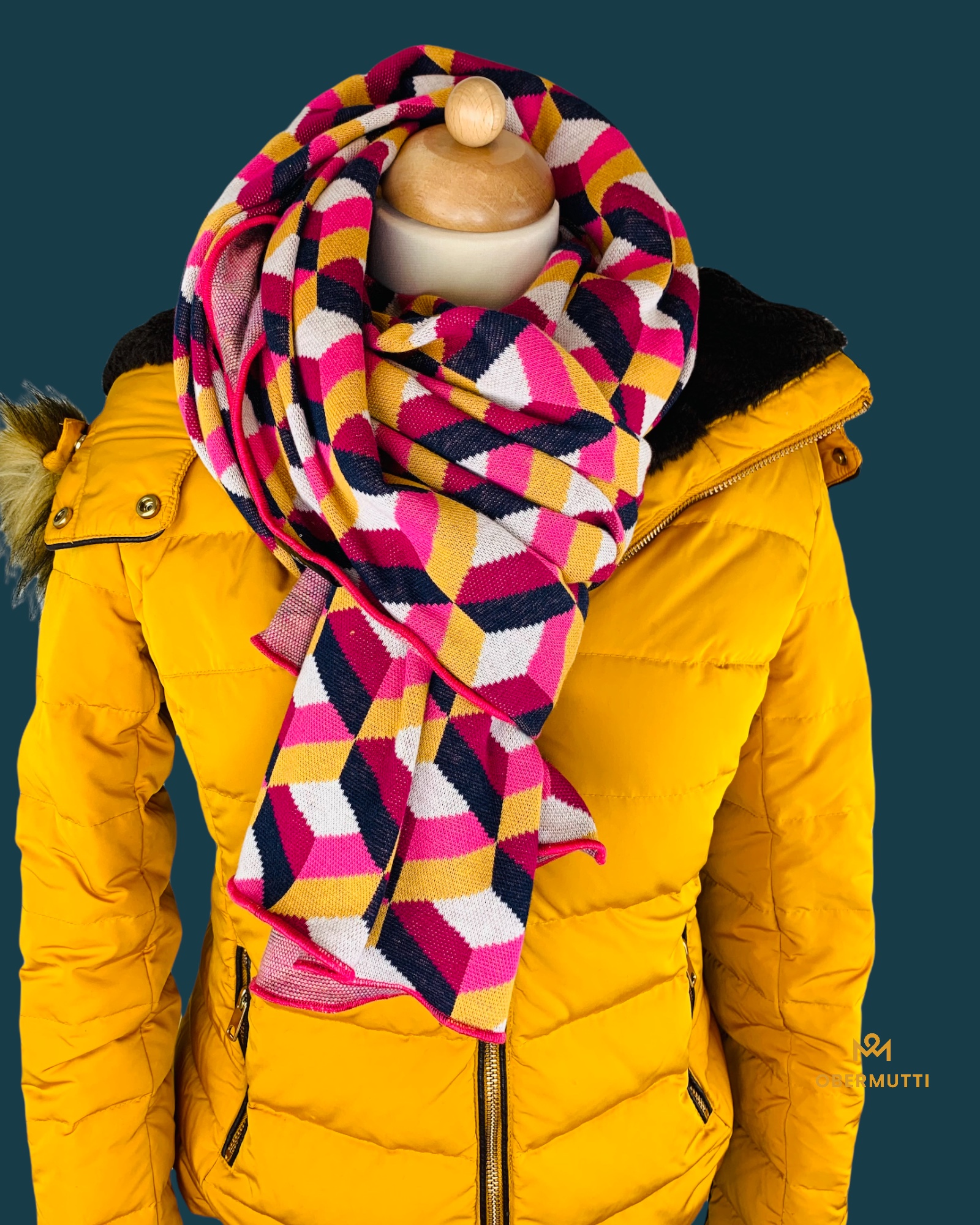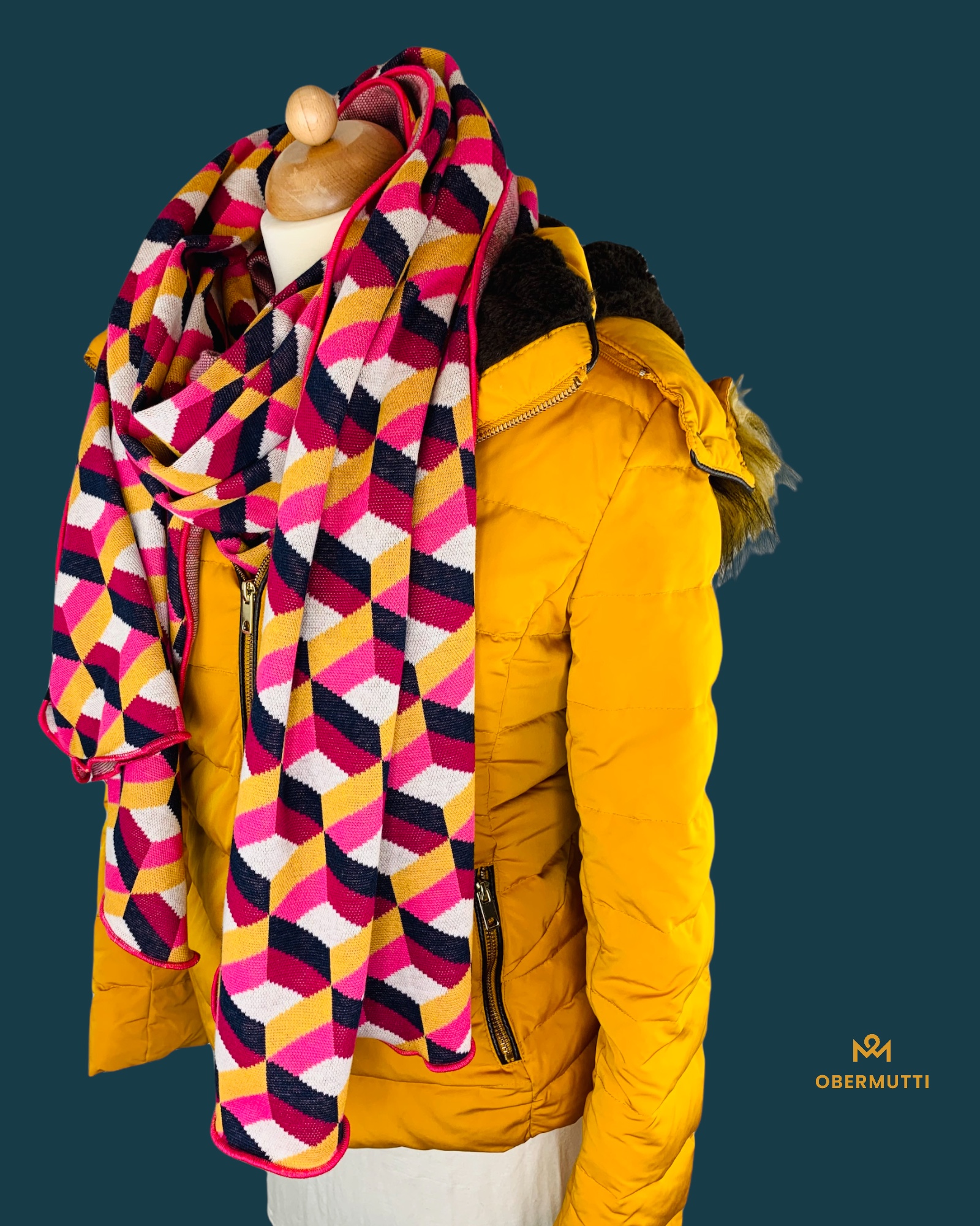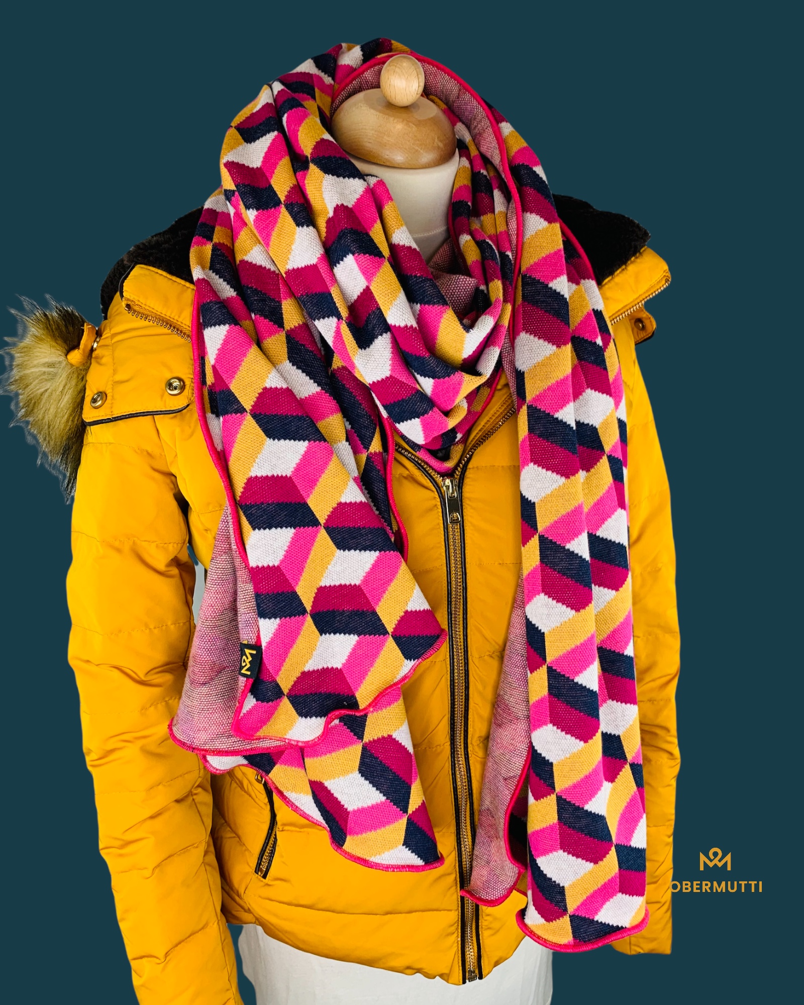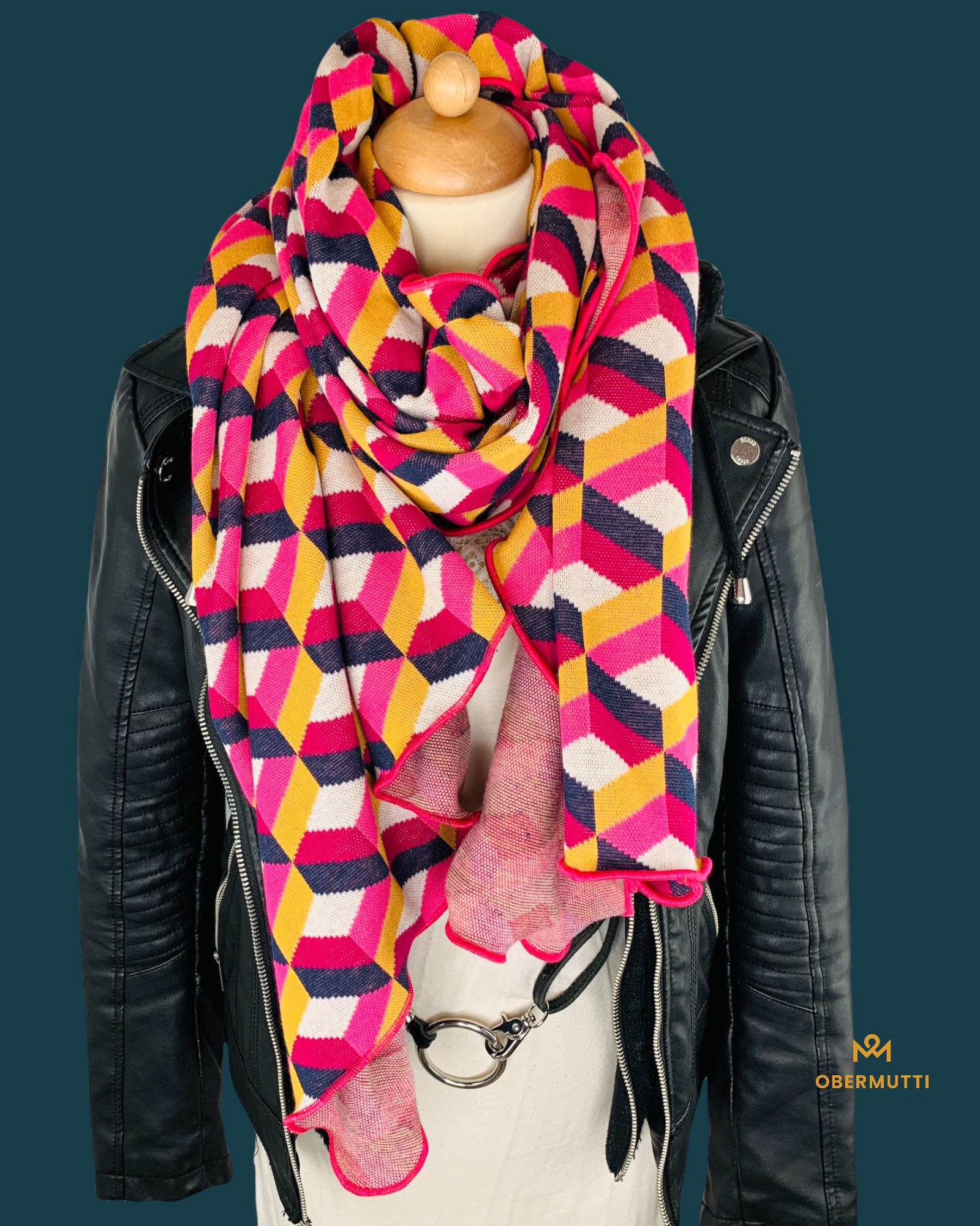 Das Logo OBERMUTTI besteht aus 50% Polyester und 50% recyceltem Polyester.
