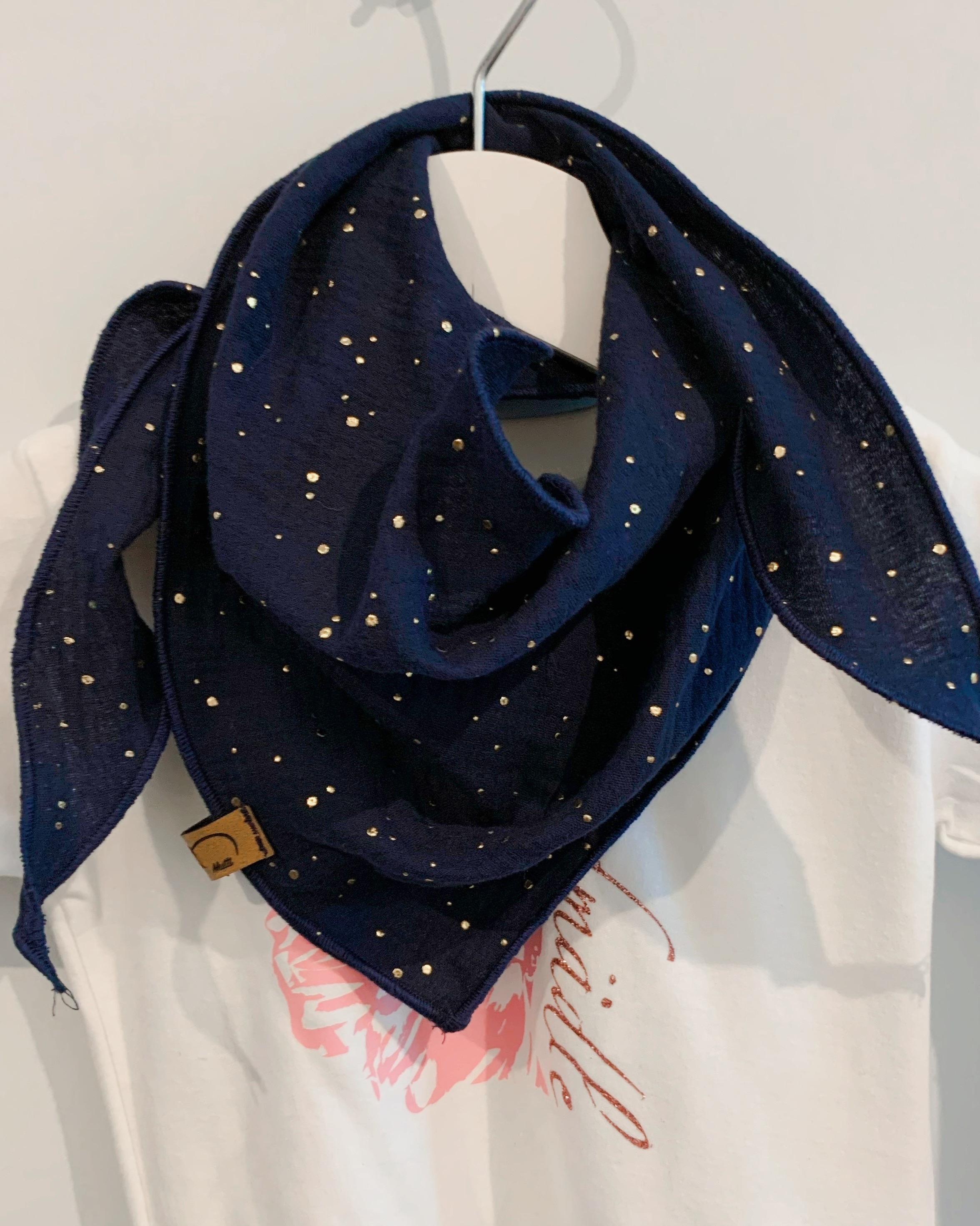 in kontrastierendem Dunkelblau mit goldenen Tropfen gefertigt.