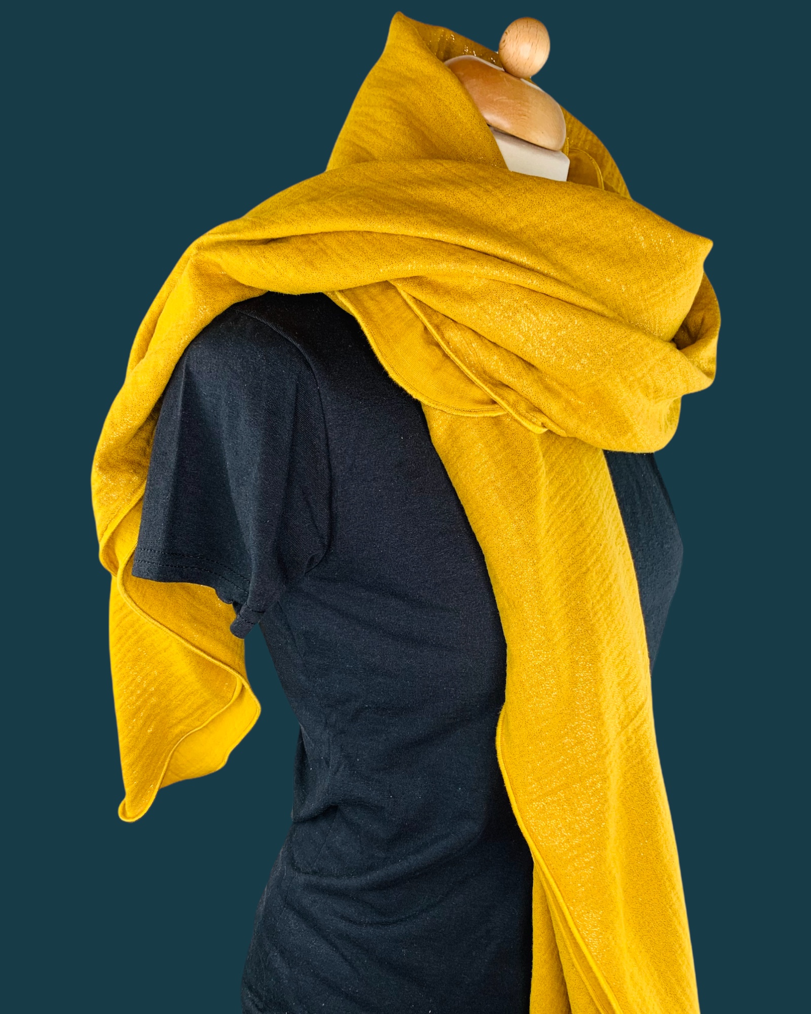 Der Schal besteht aus einem glatten, lockeren und feinfädigen Musselinbaumwollstoff.