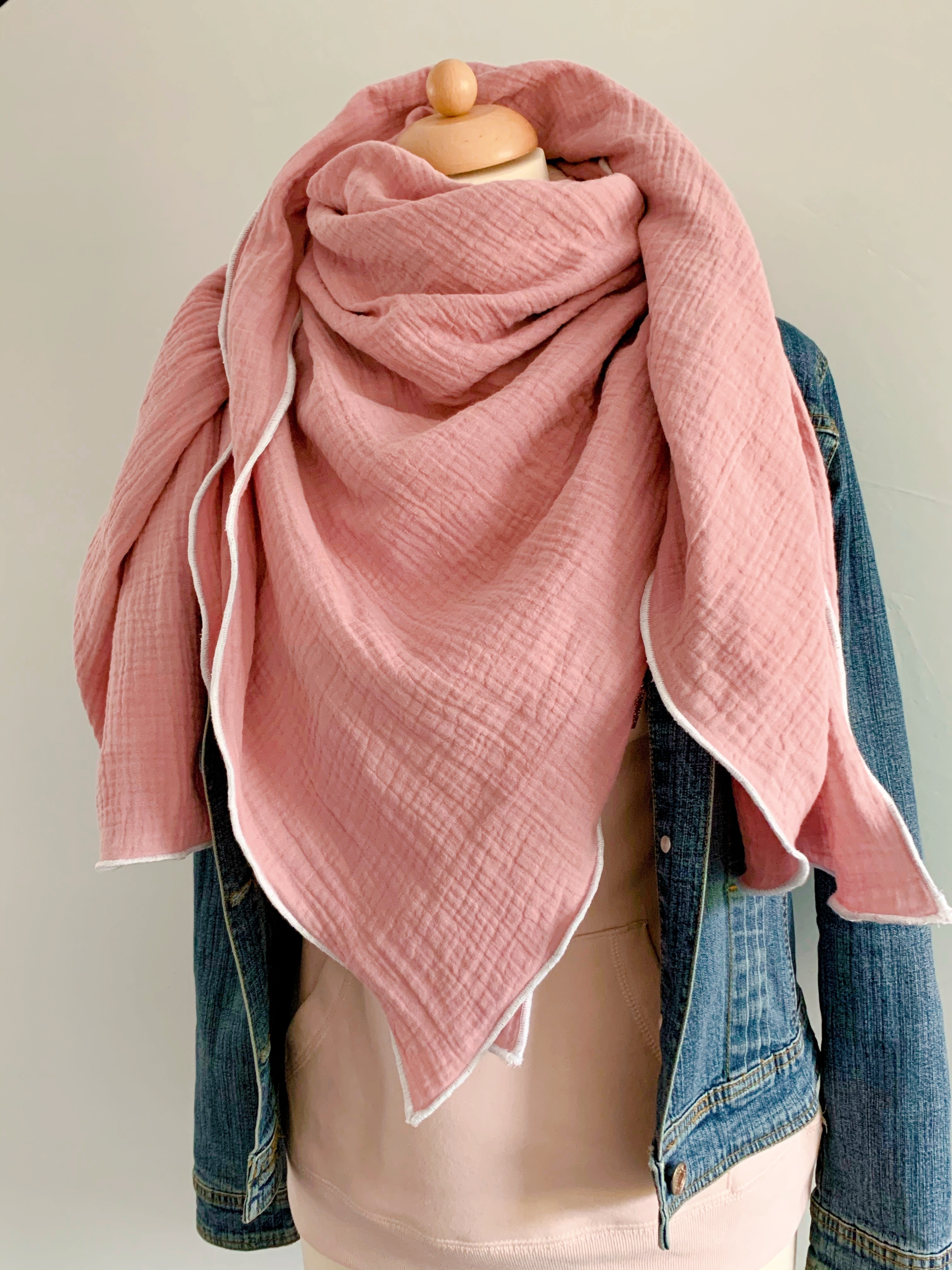 Der Schal besteht aus einem glatten, lockeren und feinfädigen Musselinbaumwollstoff.